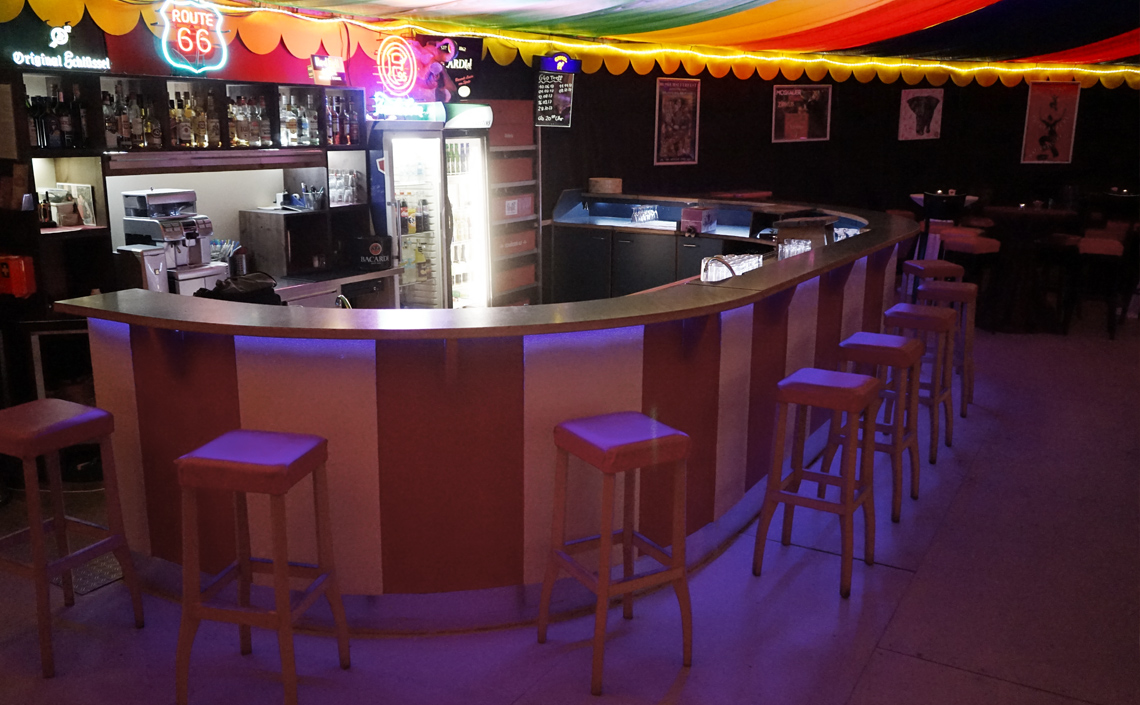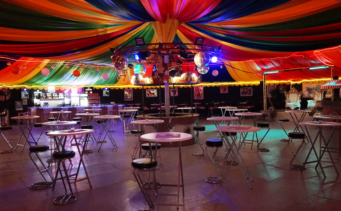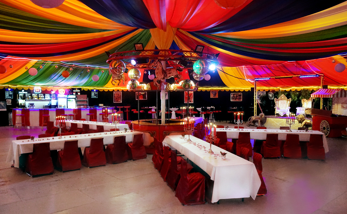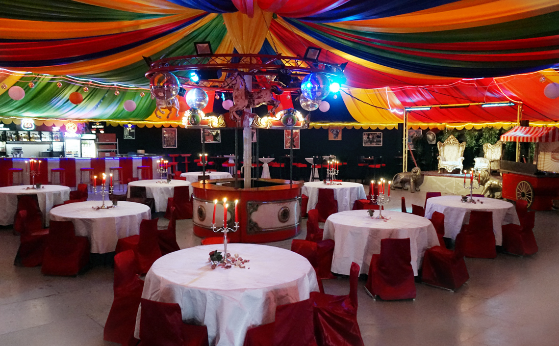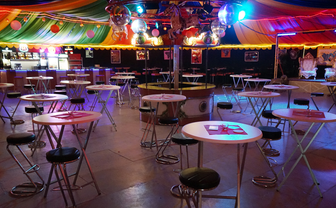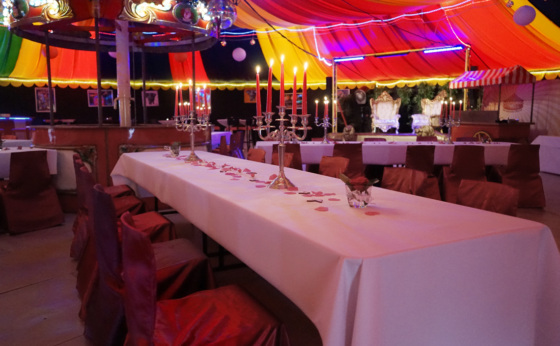 Auf 450qm bietet unser runder Einmaster rundum Platz für ein tolles Event. Das Zelt lässt sich flexibel mit Sitz- und Stehtisch-Plätzen oder einer Bankett-Bestuhlung einrichten. Theke, Bühne, Lichtanlage und eine Musikanlage stehen bereit. Im Aussenbereich ist zusätzlicher Platz für OpenAir-Veranstaltungen mit Grillmöglichkeit. Jede Veranstaltung ist individuell. Wir stehen mit Rat und Tat zur Seite und sorgen mit Ihnen für optimale Vorbereitung und einen unvergesslichen Tag.
